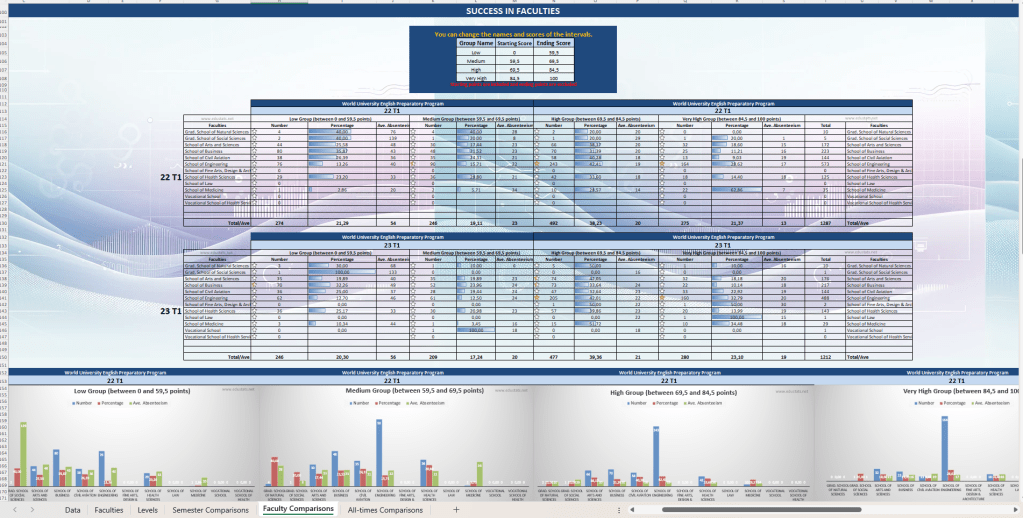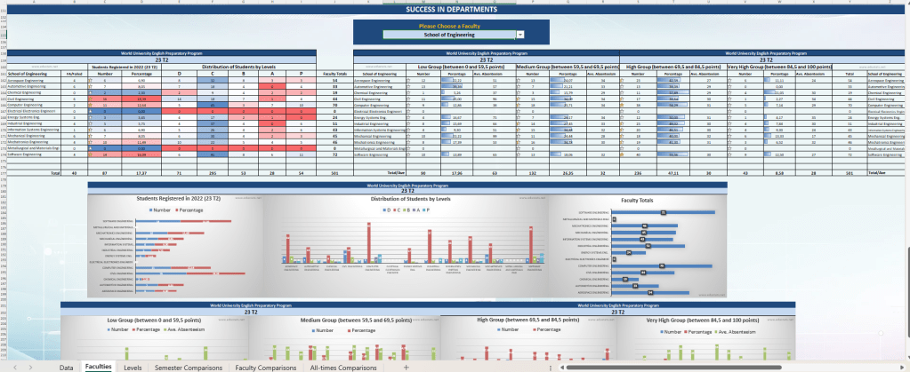💡 Detailed data analysis based on years, semesters, levels, sections, faculties and departments